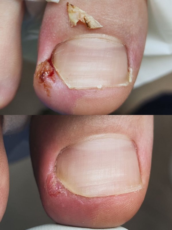 Отношение было хорошее, как клиент я довольна. Врач аккуратно почистил мне ноготь и дал рекомендации по уходу за ним. На два дня он заклеил мне ноготь, и я не мочила ногу. Всё было сделано очень аккуратно, и я легко надела обувь. Инструменты были стерильными. Следующий приём назначен на месяц.